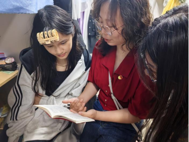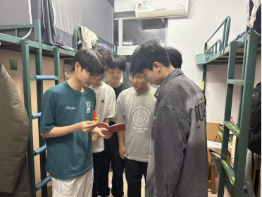 党员周文卿走进低年级本科生寝室,带领入党积极分子复习党章内容,通过领读党章的方式鼓励同学们自觉学习党章;预备党员刘钰婷、毛嘉韬同志走进低年级班本科生寝室,向24级同学们讲解有关党章、党史的内容;预备党员赖海军为24级同学们深入解读了中央八项规定精神,引导同学们深刻领悟规定对端正作风、规范行为的重要意义;预备党员汪严明、毛歆雅、汪佳涵向24级同学们详细介绍了从成为入党积极分子到正式入党的流程和要求,鼓励同学们早日站在党旗下。