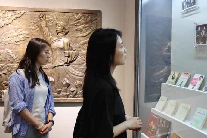 随后,师生集体参观向警予烈士生平展示厅,展馆内陈列的珍贵史料和实物场景,生动还原了向警予同志参加革命的峥嵘岁月。刘洁教授结合《新闻学研究》和《马克思主义新闻观》课程,详细讲解了向警予同志从早期求学、投身革命到英勇就义的光辉历程,重点剖析其作为中国共产党早期领导人及妇女运动先驱的坚定信仰与无畏精神,引导师生感悟革命先辈的崇高品格。