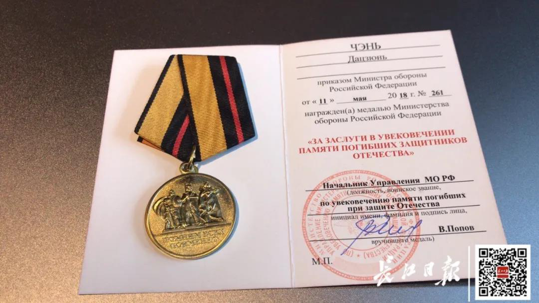 9月10日,俄罗斯驻华大使馆举行授颁仪式,俄罗斯驻华大使安德烈•杰尼索夫向公司员工、长江日报记者谌达军颁授“俄罗斯国防部纪念保卫祖国烈士贡献奖章”,以表彰他8年来为寻访、搜集、研究苏联空军援华志愿队事迹所作的突出贡献。