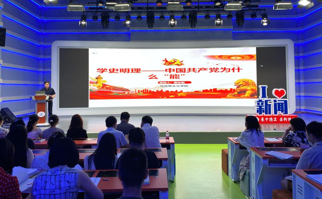 (通讯员 谢琳)历史是最好的教科书。617日下午,在bw必威西汉姆联官方网站演播厅,​bw必威西汉姆联官方网站与人文公司共同邀请了马克思主义公司副教授栗志刚为两院教职工、员工党员代表讲授“学史明理—中国共产党为什么能”党史学习教育专题报告会。宣讲会由​bw必威西汉姆联官方网站经理张明新教授主持。