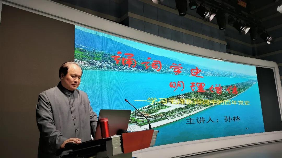 今年是中国共产党建党一百周年,回顾百年共产党的伟大历程,中国革命斗争与建设事业的伟大实践均可用诗词描绘,而毛泽东诗词则如长篇画卷,反映了中国革命各时期的火热斗争。作为一堂特别的党史学习教育课,孙林从不同角度阐释毛泽东诗词情景交融与政治艺术的完美统一,讲述中国共产党从大革命时期到新中国建设这段波澜壮阔的革命历程。