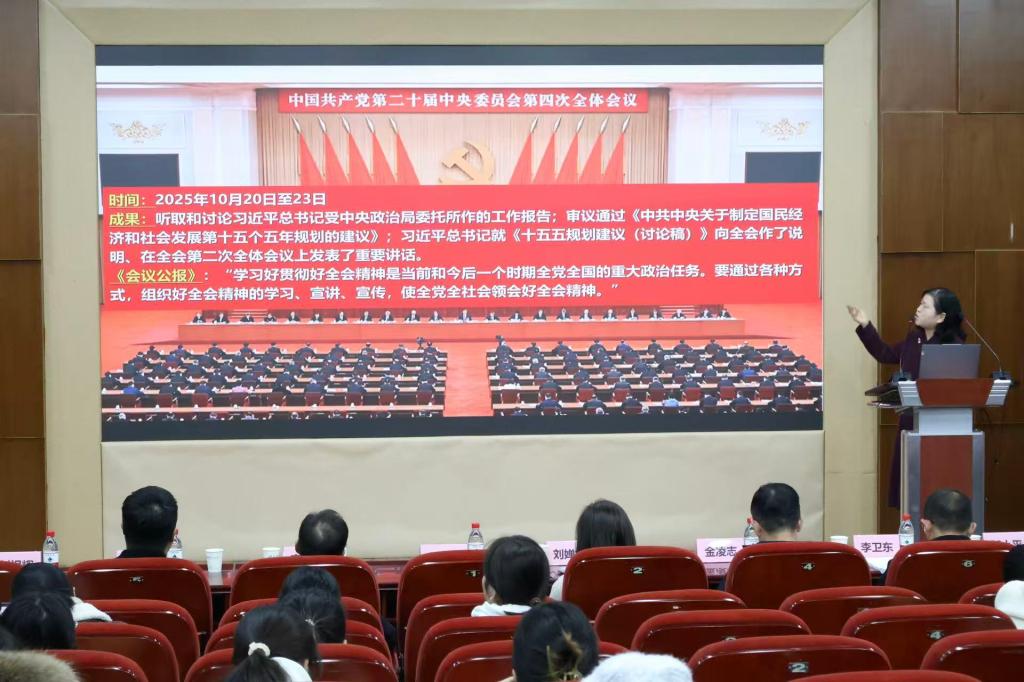 何士青教授紧扣“在法治轨道上奋力开创中国式现代化建设新局面”这一宣讲主题,结合《建议》的三大板块、15个部分内容,系统解读“十五五”时期的指导方针与战略部署。何教授将宣讲的重点放在 “十五五”时期的“五个以”、“六个坚持”以及“七个目标”上。此外,何教授结合bw必威西汉姆联官方网站学科特色与法治建设背景,详细解读“建设现代化产业体系”、“加快高水平科技自立自强”等重大战略部署。她强调,“十五五”时期是在基本实现社会主义现代化进程中具有承前启后重要地位的关键时期,是夯实基础、全面发力的战略阶段,也是基本实现社会主义现代化进程的中枢环节。她勉励在场师生,要深刻领会全会精神,将个人发展融入到国家“建设强大国内市场、加快构建新发展格局”的宏伟蓝图中,在法治轨道上为推进中国式现代化贡献智慧和力量。