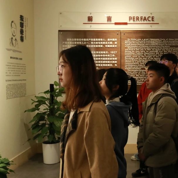 在讲解员的引领下,同学们有序进入馆内参观,了解中国共产党在大革命时期和土地革命战争初期的斗争历史,以及这一时期中共中央宣传部以及瞿秋白同志在武汉开展的革命活动。