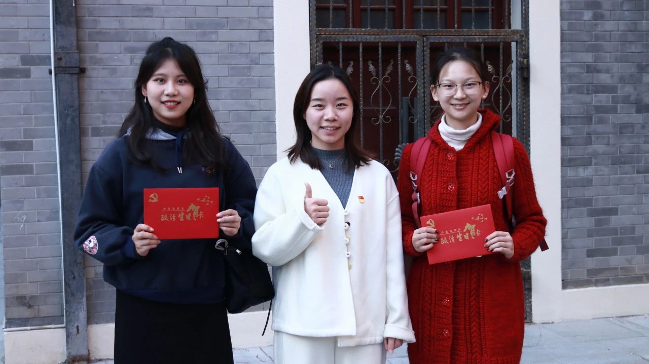 组织入党,一生一次;思想入党,一生一世。党建辅导员许静静为即将迎来政治生日的陈星宇和杨丽同学颁发政治生日卡,勉励党员同志要时刻铭记入党初心,践行共产党员的责任和使命,发出新时代新闻人的声音。