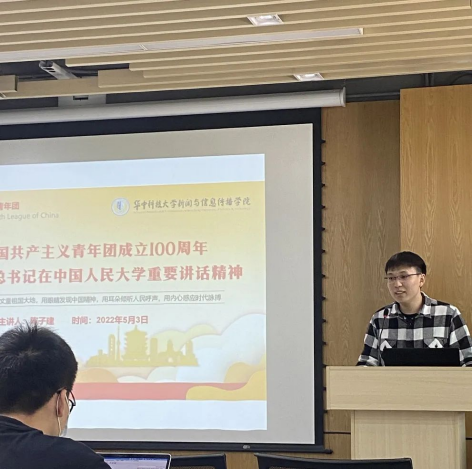 随后,陈子建对习近平总书记在中国人民大学考察时的重要讲话精神进行领学。他以观看视频资料引入,带领与会同学读原文、学金句、划重点、悟精神,并重温了总书记青年工作重要论述。